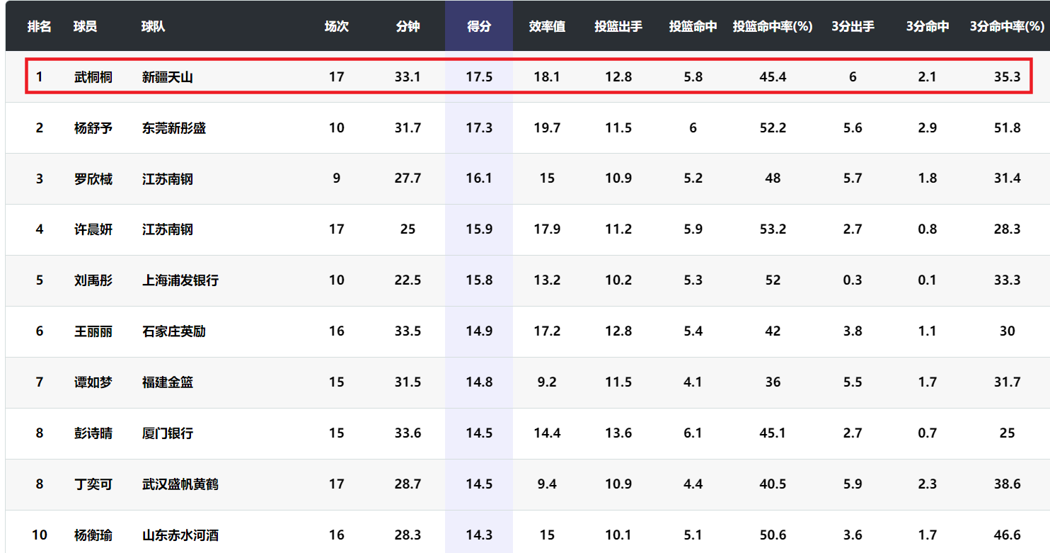 在本赛季WCBA联赛助攻榜(包含外援)上,31岁的武桐桐以场均8.7次助攻高居第一。此外,武桐桐场均得到17.5分,位居本赛季本土球员得分榜第一。经历了两次膝盖手术的武桐桐终于穿越了黑暗时光,恢复了巅峰状态。这样的武桐桐是目前中国女篮非常需要的得分手和进攻组织者。